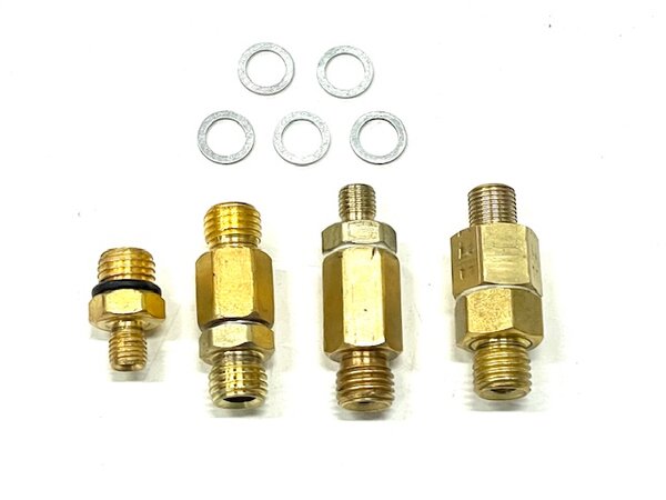 The included metal fittings will attach the tester to all K-Jetronic and KE-Jetronic 6-cylinder and V8 engines to test full system pressure and control pressure.