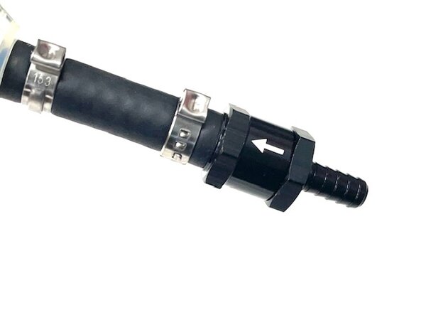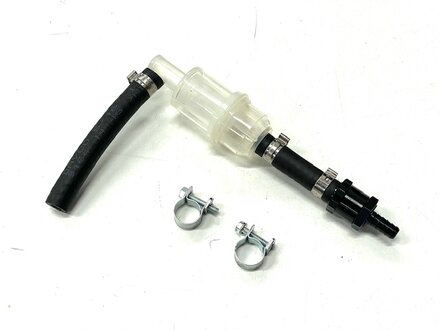 This is a combination one-way check valve and right-angle pre-filter that Kent assembles in the shop with quality fuel hose and high-pressure pinch clamps (they won't allow air to enter the system). This can be easily installed in place of your current pre-filter. Be sure to pinch off the fuel hose coming from the tank before disconnecting from your old pre-filter. Cut your existing hose to length and install it with the new clamps provided. (see pinch clamps below)