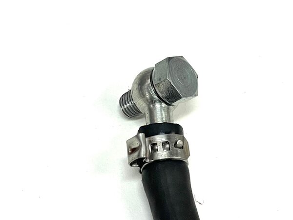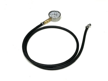 The correct banjo bolt fitting with sealing rings is mounted to the other end of the tester. This will bolt right up to the test port without any modification.