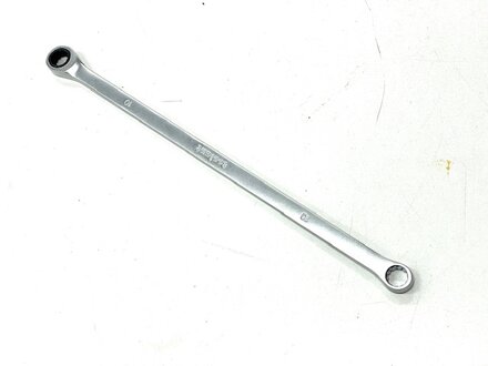 Fits the following 108, 111, 113, 114, 115, 116, 107, 123, and 126 chassis with four-bolt mount vicious and fixed fans. NEW IN 2026! Now, a very long 11-inch 10mm wrench with a standard box on one end and a ratcheting box on the other end. We grind the standard box end down thinner so it can get over the top of those hard-to-reach bolts. I developed this special tool out of sheer frustration from years of trying to remove rounded-off and frozen 10 mm head bolts that mount the viscous clutch to the water pump. These special 10mm bolts (4) are often abused, and when you try to get them off, particularly with an open-end 10mm wrench, you can round the head, and then you've got some real problems.