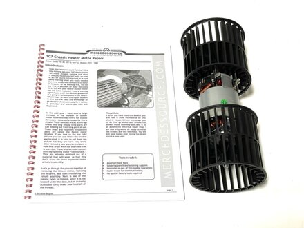 Brand new aftermarket blower motor as shown. Fits all R107 and C107 (SLC) from 1972 to 1989. Even if you motor is working you want to open up this area and inspect for hidden rust.