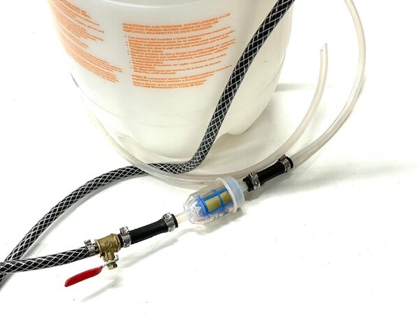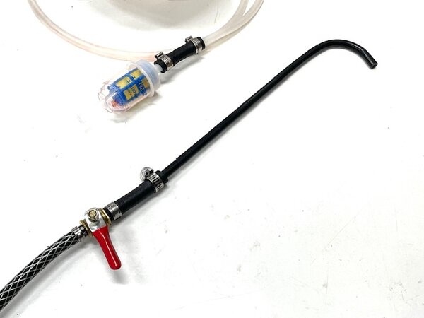 The 2-gallon pressure tank includes a small filter to keep any particles out of your transmission, along with a valve that allows you to open and shut off the flow of fluid. The tube is the correct diameter to enter the bottom of the transmission pan and still allow it to vent for rapid filling.